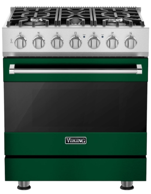The Viking® Ivy 30" Dual Fuel Range features a stunning antique bronze finish and combines gas burne