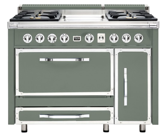 The Viking® Tuscany Eucalyptus 48" Dual Fuel Range offers exceptional cooking versatility with a pow