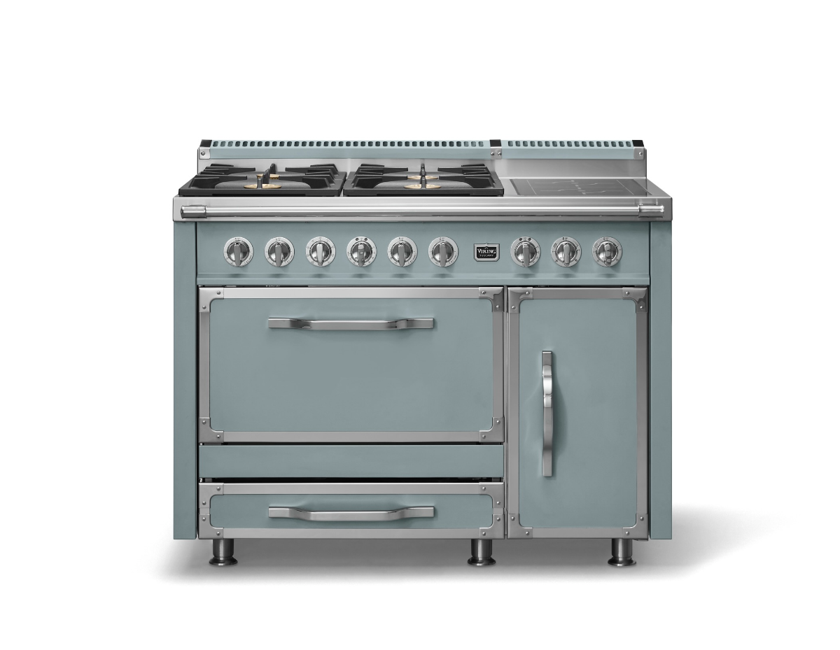The Viking® Tuscany 48" November Sky 4-Burner Dual Fuel Range with Induction brings both style and p
