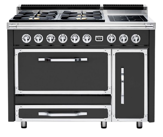The Viking® Tuscany Antique Bronze 48" 6-Burner Dual Fuel Range combines timeless design with except
