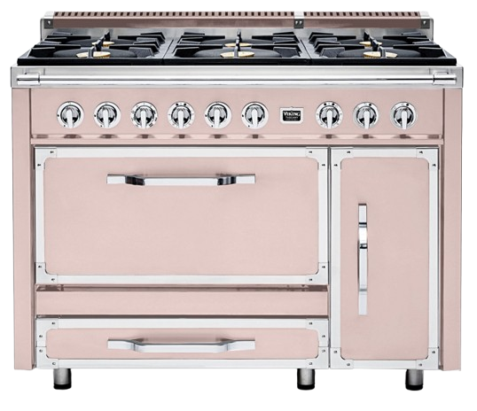 The Viking® Tuscany Blush 48" 6-Burner Dual Fuel Range offers a stunning blush pink finish that comp