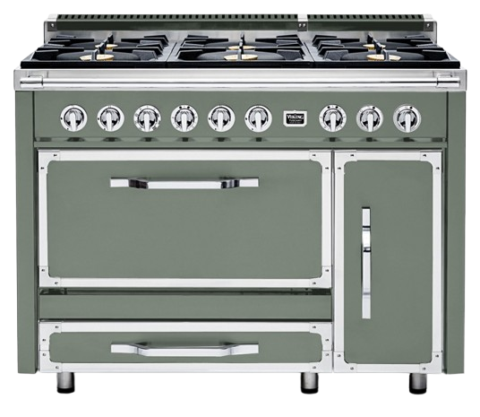 The Viking® Tuscany Eucalyptus 48" 6-Burner Dual Fuel Range blends striking design with high-perform