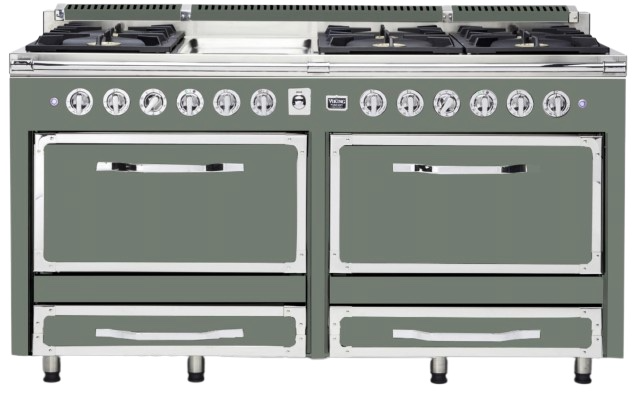 The Viking® Tuscany 66” Eucalyptus Dual Fuel Range with 6-Burner and Griddle combines superior cooki