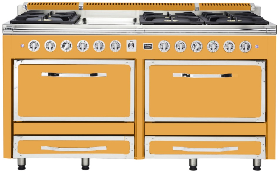 The Viking® Tuscany Daffodil 66" Dual Fuel Range Burner combines vibrant design with powerful perfor