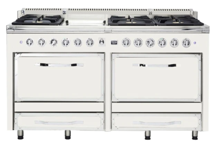The Viking® Tuscany Pure White 66" Dual Fuel Range Burner offers a sleek, modern aesthetic with its