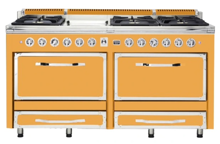 The Viking® Tuscany Daffodil 66" 8-Burner Dual Fuel Range combines vibrant style with high-end perfo