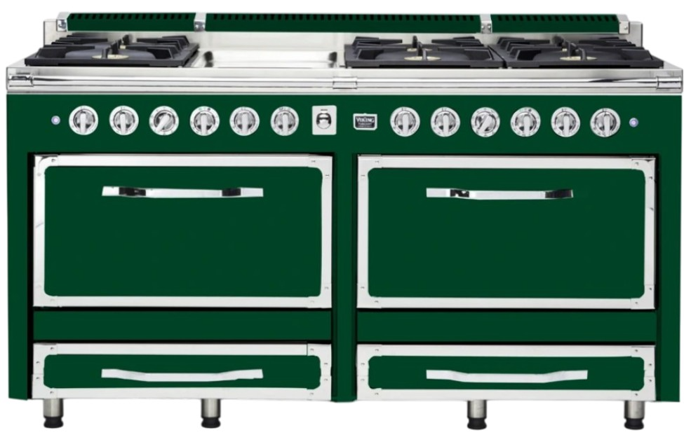 The Viking® Tuscany Ivy 66" 8-Burner Dual Fuel Range blends rich design with high-performance cookin