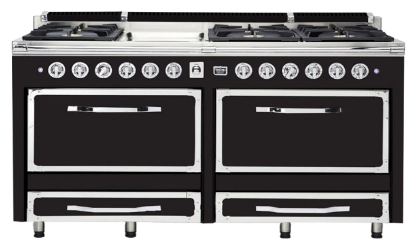 The Viking® Tuscany 66" Onyx 8-Burner Dual Fuel Range combines sleek, bold design with powerful perf
