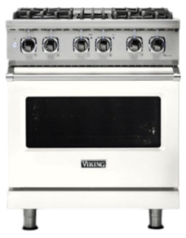The Viking® Pure White 30" Self-Cleaning Dual Fuel Range blends timeless elegance with advanced cook