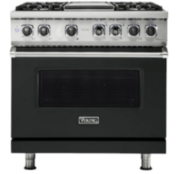 The Viking® Antique Bronze 36" Self-Cleaning Dual Fuel Range with Griddle combines luxury and perfor