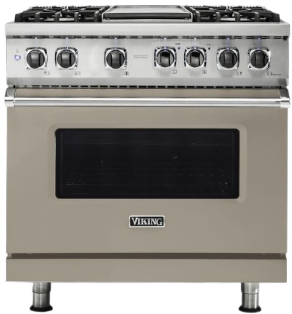 The Viking® Nantucket 36" Self-Cleaning Dual Fuel Range with Griddle combines luxury and performance