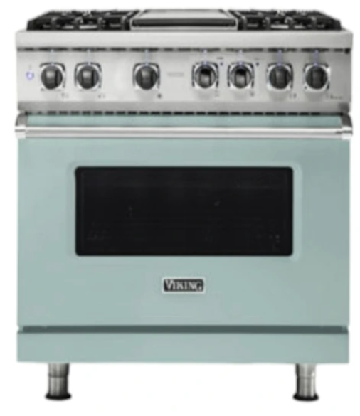 The Viking® Splash 36" Self-Cleaning Dual Fuel Range with Griddle combines luxury and performance. F