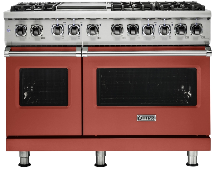The Viking® Spiced Cider 48" Self Cleaning Liquid Propane Dual Fuel Range with Griddle combines luxu