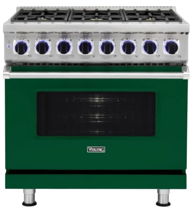 The Viking® 36" Dual Fuel Range with Sealed Burners combines a gas cooktop with six sealed burners f