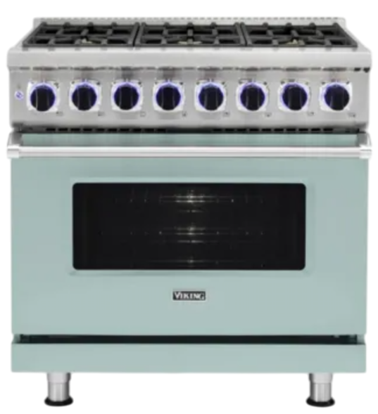 The Viking® 36" Dual Fuel Range with Sealed Burners combines a gas cooktop with six sealed burners f