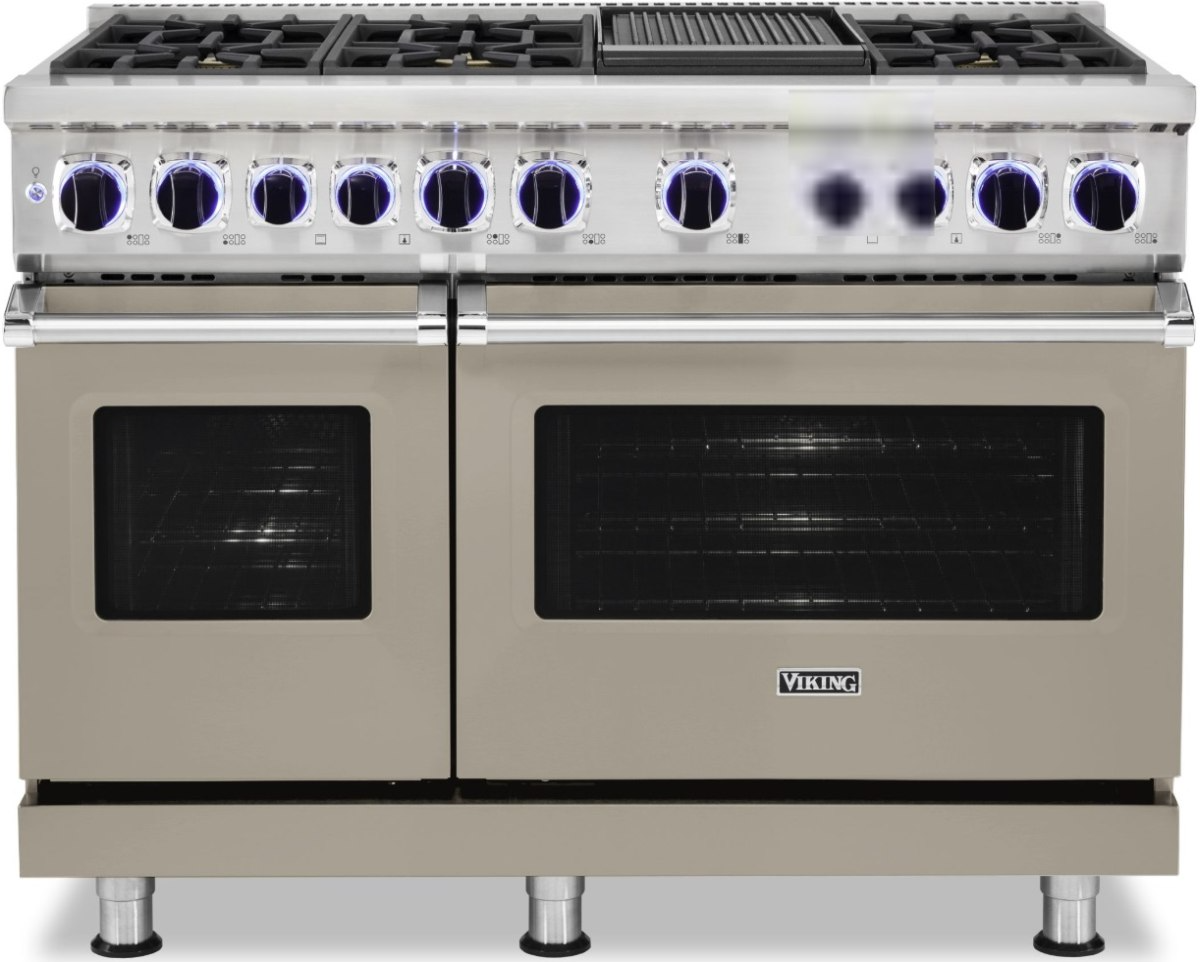 The Viking® 48" Dual Fuel Range features a gas cooktop with up to 6 sealed burners for precise heat
