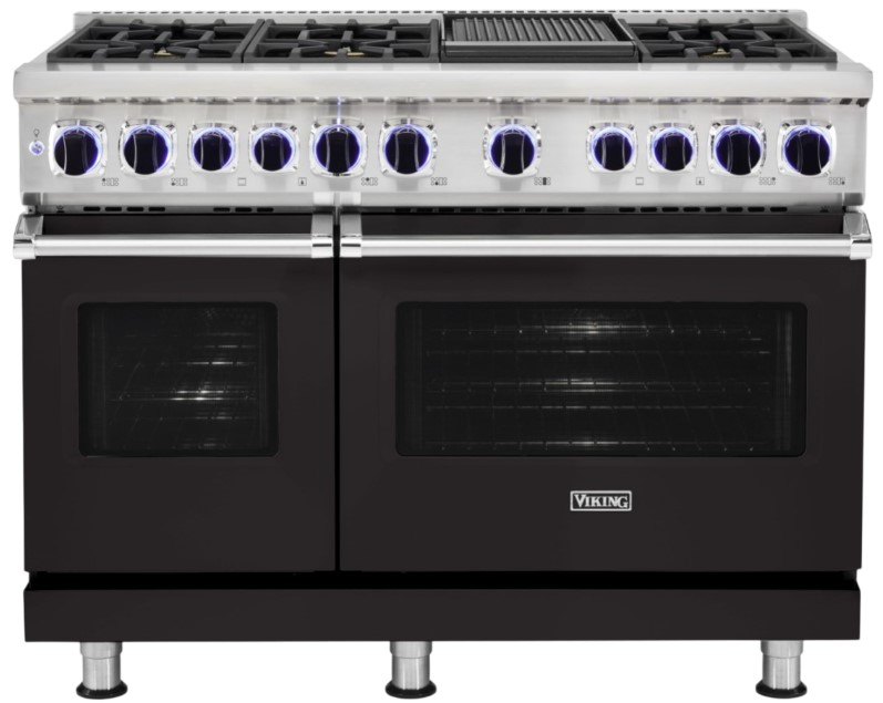 48" Dual Fuel Range with Sealed Burners, featuring six burners and a griddle. Combines gas and elect