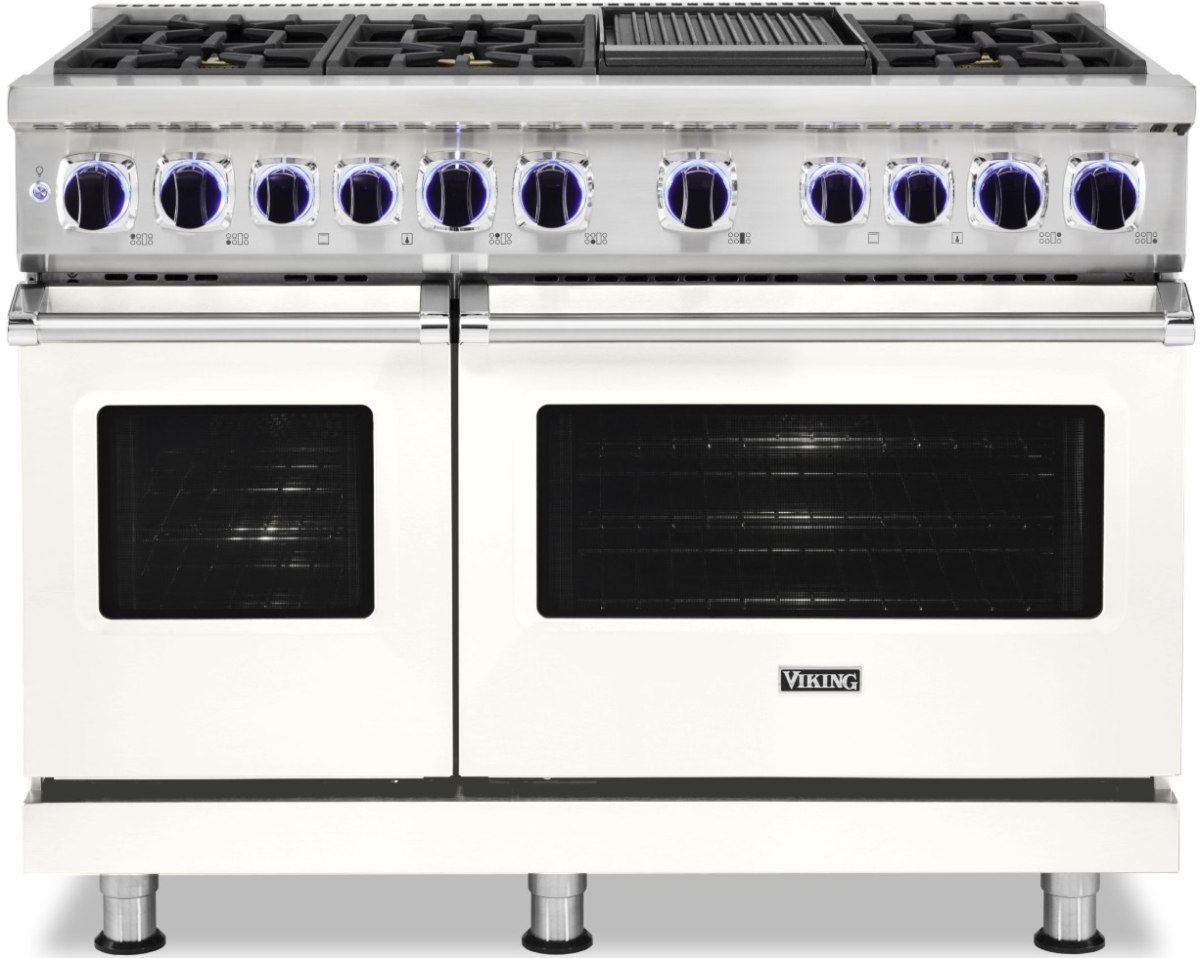 The Viking® 48" Dual Fuel Range features a gas cooktop with up to 6 sealed burners for precise heat