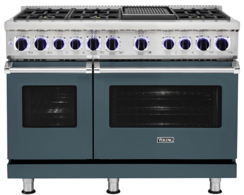 48" Dual Fuel Range with Sealed Burners, featuring six burners and a griddle. Combines gas and elect