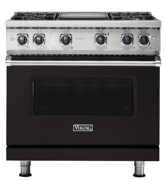 The Viking® 36'' Onyx Sealed Burner Gas Range showcases a sleek onyx black finish, adding modern ele