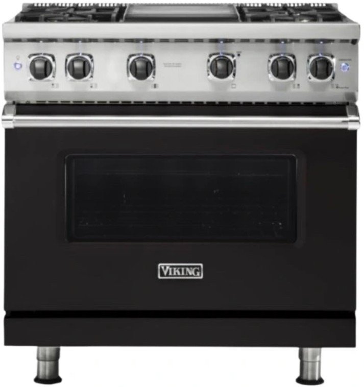 The Viking® 5 Series 36” Onyx Gas Sealed Range with 4-Burner and Griddle is a top-tier appliance des