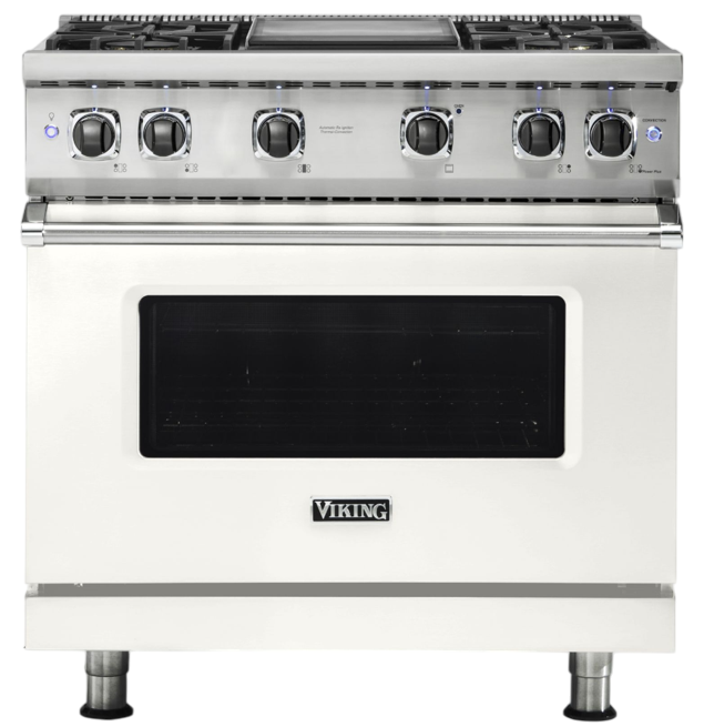 The Viking® 36'' Pure White Sealed Burner Gas Range features a pristine white finish that brightens
