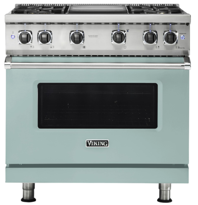 The Viking® 36'' Splash Sealed Burner Gas Range features a bold, vibrant finish that adds personalit