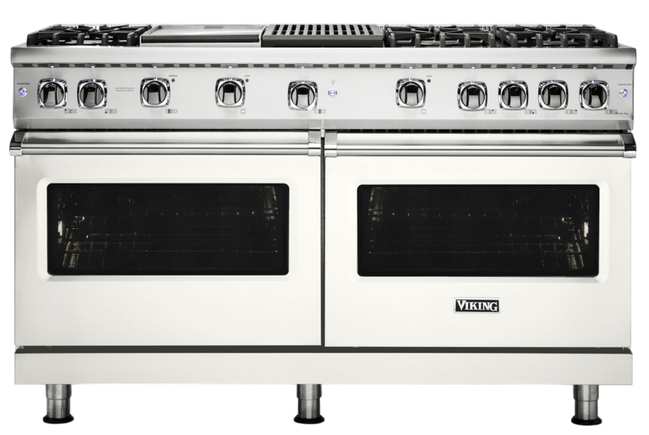 The Viking® 5 Series 60'' Pure White Gas Range offers professional-grade cooking with six powerful b