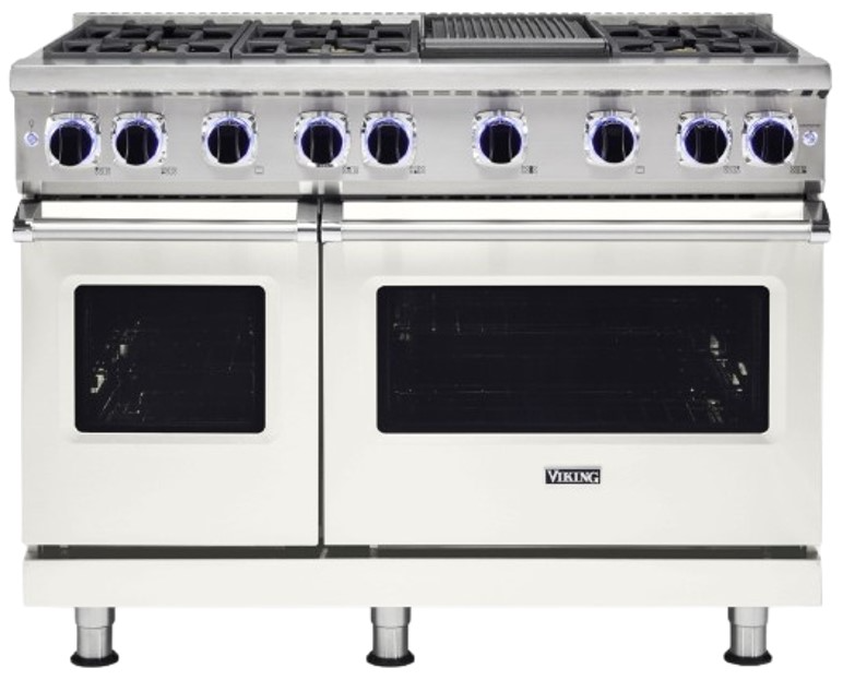 The Viking® 7 Series 48" Pure White Gas Range with Griddle delivers exceptional cooking performance